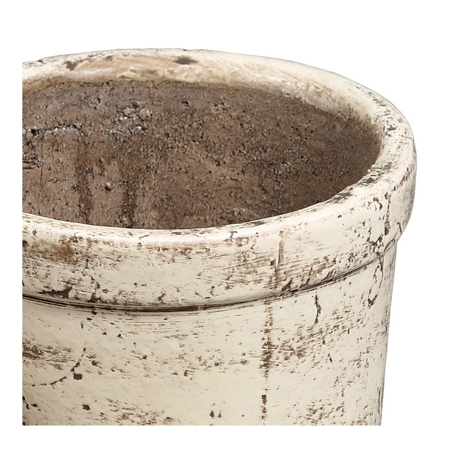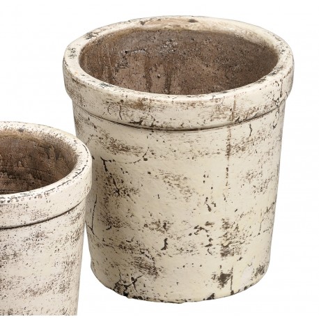 Jasne doniczki w stylu prowansalskim Belldeco o ciekawym, nieregularnym pokryciu farbą.