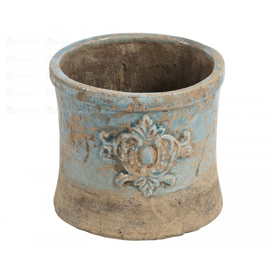 Okrągła Donica Delia Cylinder marki Belldeco efektownie stylizowana na starą, spękaną donicę w stylu prowansalskim.
