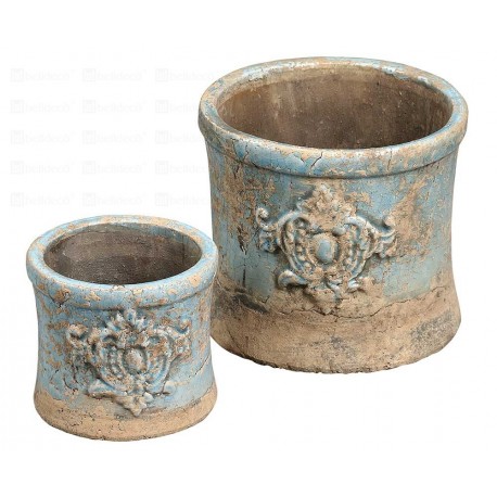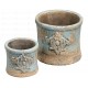 Nieduże, dwukolorowe donice w stylu prowansalskim Delia Belldeco o spękanej, ciekawie stylizowanej powierzchni.
