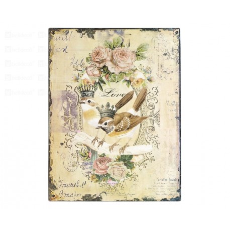Postarzane wzdłuż krawędzi obrazki Prowansja "Ptaszek w Różach" to piękne prowansalskie dekoracje Belldeco wykonane z metalu. Na obrazkach znajduje się uroczy, prowansalski wzór o pastelowych kolorach. Obrazek jest idealnym pomysłem na ozdobienie ściany dla osoby lubiącej styl prowansalski.