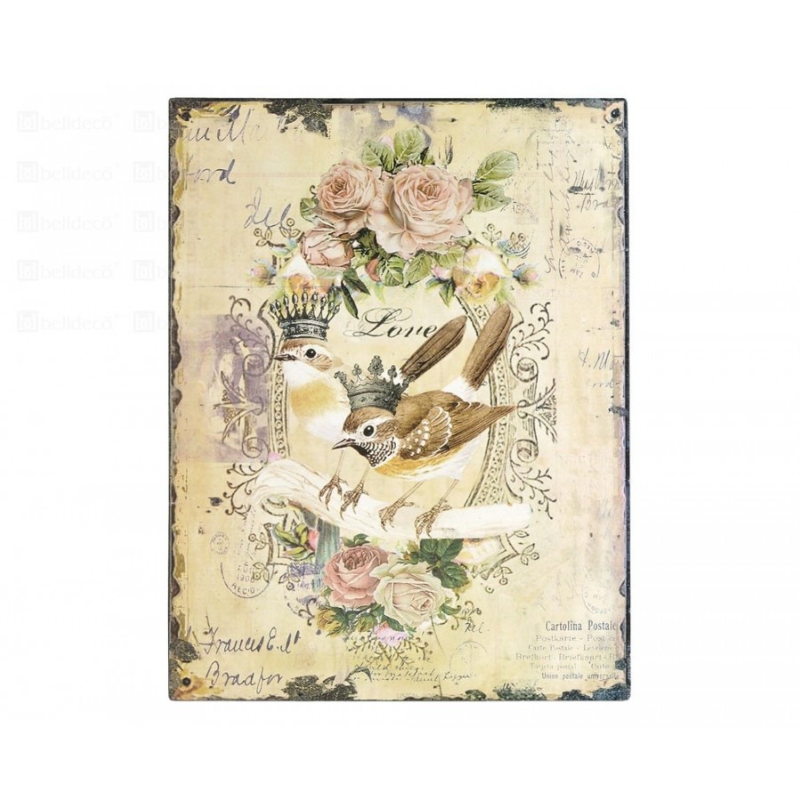 Śliczny Obrazek Belldeco Ptaszek w Różach z serii Prowansja o uroczym, prowansalskim wzorze, na którym znajdują się dwa ptaszki w koronach.
