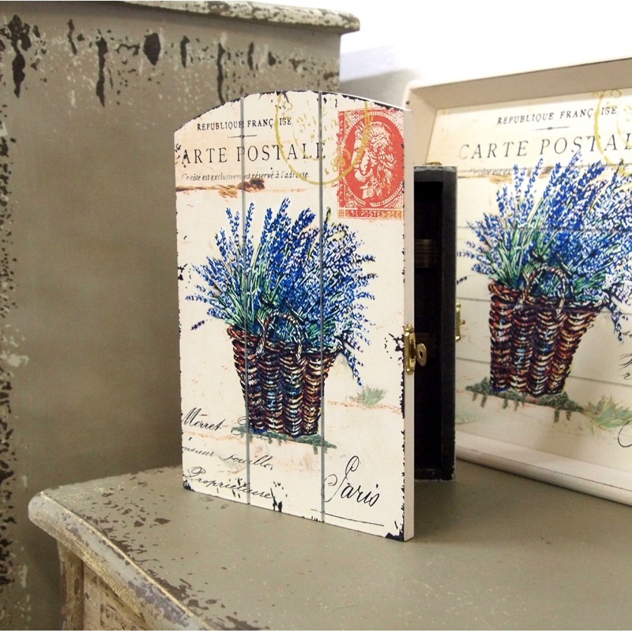 Szafki na klucze w stylu prowansalskim na których znajduje się lawenda to klimatyczne, prowansalskie dekoracje wykonane z drewna.