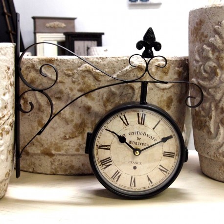 Dwustronny zegar kolejowy FRANCE idealny dla wszystkich, którzy cenią nieprzeciętne prowansalskie dodatki. Na tarczach zegara znajduje się napis FRANCE, a cała kremowa powierzchnia tarczy jest stylizowana na spękaną. Dzięki eleganckim cyfrom rzymskim, którymi zapisane są godziny, zegar kolejowy France wygląda bardzo stylowo i elegancko.