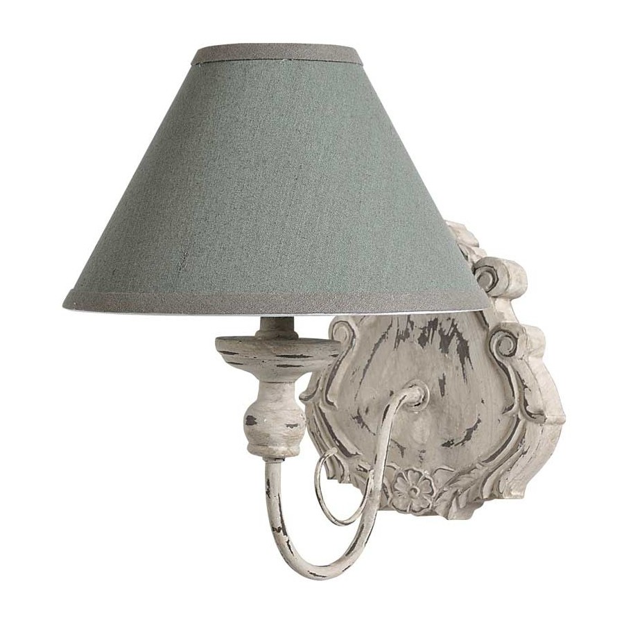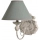 Piękny, prowansalski kinkiet Belldeco z kolekcji Romantic z wykonanym z lnu, szarym abażurem.