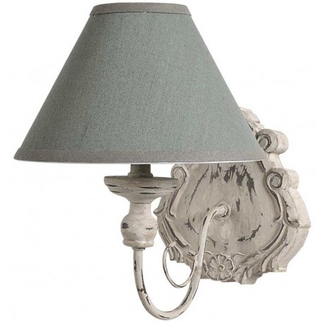 Piękny kinkiet w stylu prowansalskim z szarym abażurem wykonanym z lnu. Kinkiet ma uroczy kształt i efektownie wyglądające przetarcia. Kinkiet wraz z abażurem odstaje od ściany na 31 cm.