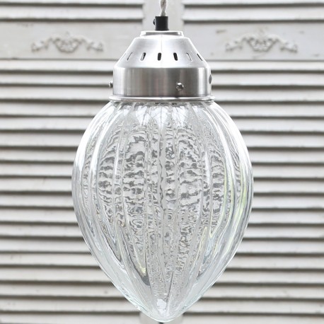 Nowoczesna lampa szklana udekorowana wklęsłymi pionowymi paskami. Pięknie oświetli wnętrze swoim blaskiem!