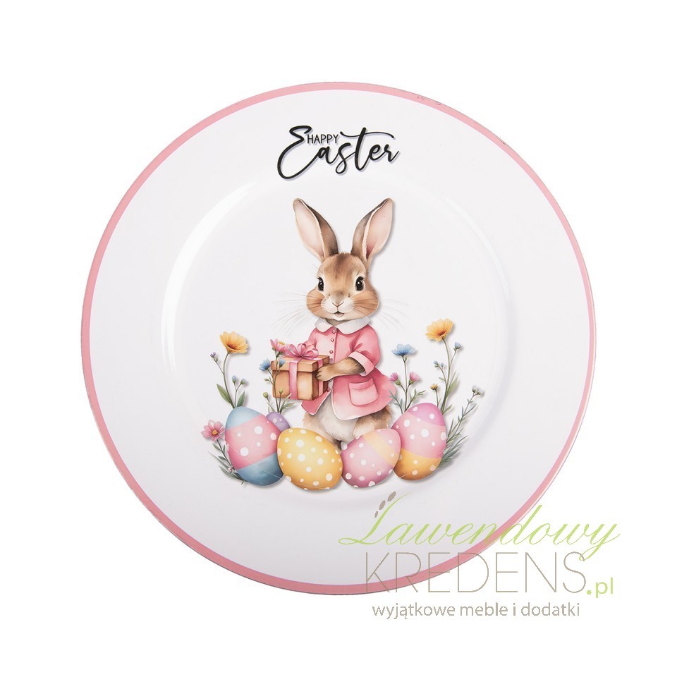 Motyw królika w pastelowej stylizacji, kwiaty i pisanki budują klimat wiosennej, przytulnej celebracji. To nie jest krzykliwy gadżet, tylko dopracowana ilustracja: miękkie kolory, delikatna kompozycja i lekko „cukierniczy” charakter pasują do estetyk: cottage, shabby, rustykalnej oraz klasycznej. Jeśli lubisz pastelowe dodatki na Wielkanoc, ten podtalerz zagra świetnie z białą porcelaną, szkłem i lnianą serwetą.Jak zestawić podtalerz Clayre & Eef z talerzami, sztućcami i serwetami