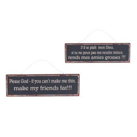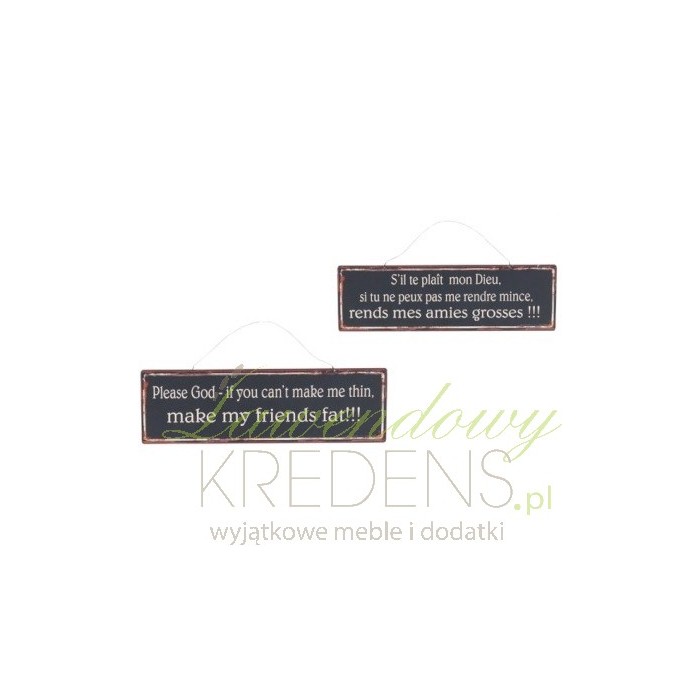 Prostokątna tabliczka metalowa z napisami to dekoracja, którą możesz wykorzystać w każdym pomieszczeniu. Dwustronne, metalowe tabliczki w czarnym kolorze podkreślono czarną ramką, która zanika pod przetarciami. Napisy w języku angielskim z jednej strony i napisy w języku francuskim z drugiej możesz dowolnie eksponować w kuchni, w salonie, a nawet na drzwiach do pokoju. Daj się ponieść antycznym dekoracjom takim jak tabliczka z napisami już teraz!