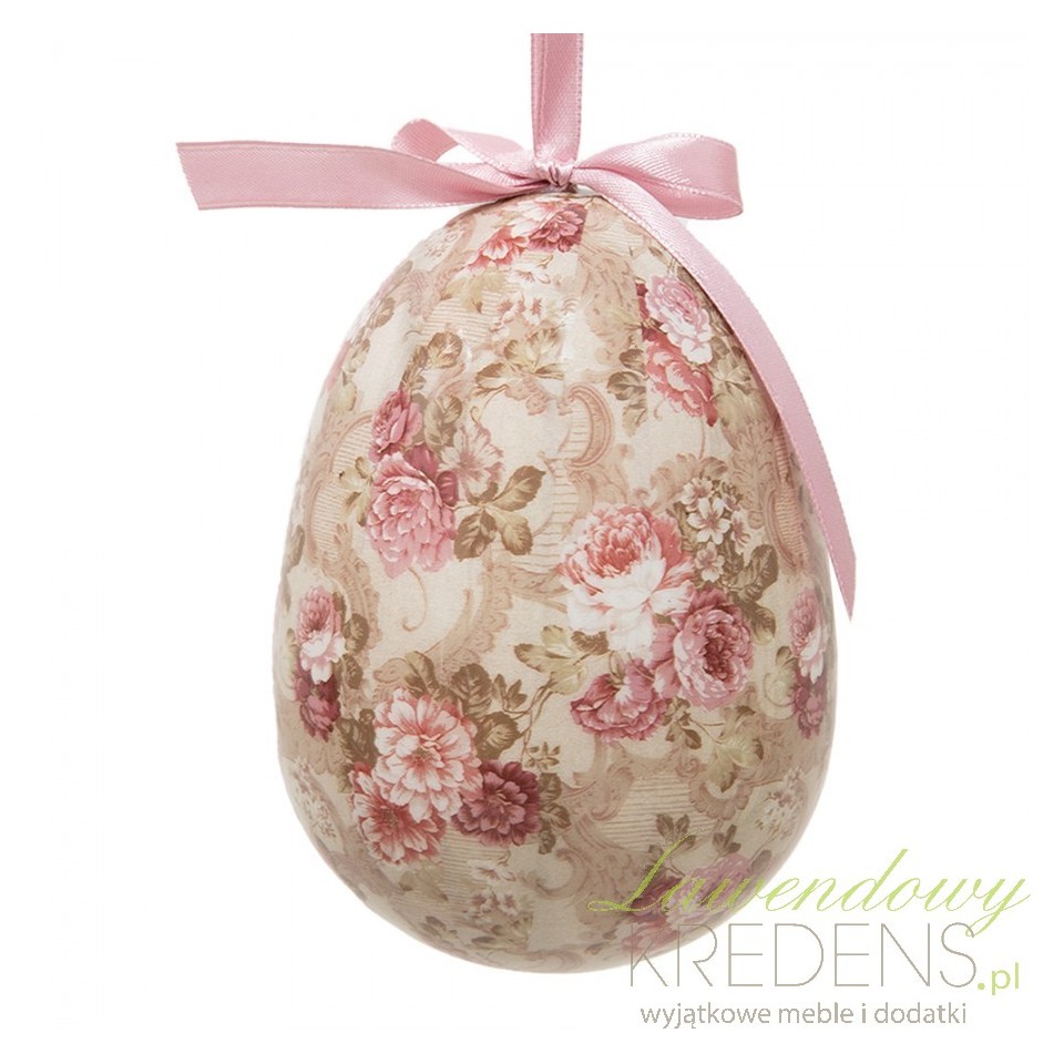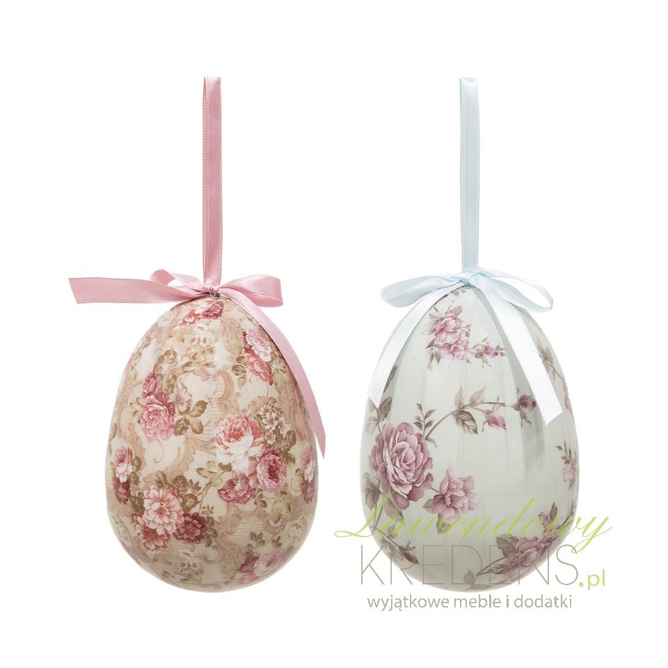 Jeśli chcesz stworzyć świąteczny klimat bez kupowania nowych ozdób co sezon, te zawieszki wielkanocne – jajka 2 szt. rozwiązują problem „pustych” gałązek w wazonie, monotonnych zasłon i zbyt surowej komody. Wystarczy jeden ruch: zawieś je na baziowych witkach, uchwytach szafek albo przy oknie, a wnętrze zyskuje miękki, wiosenny akcent.Wzór w róże i satynowe wstążki – dekoracja w stylu shabby chic i cottage