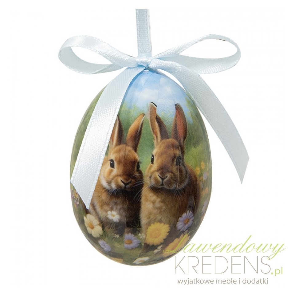 Jeśli brakuje Ci czasu na stroiki, a chcesz natychmiastowego efektu „świątecznego wnętrza”, ten komplet rozwiązuje problem w 5 minut. Zawieszki wielkanocne w kształcie jajek mają gotowe wstążki, więc od razu zawiesisz je na gałązkach bazi, wianku na drzwiach, karniszu albo uchwytach szafek. Motywy królików i wiosennej łąki budują przytulny, naturalny klimat bez przesytu.Malowane jajka z królikami – rustykalny detal do stroików i koszyczka