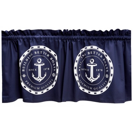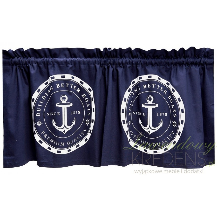 Zazdrostki French Home z motywem dużej kotwicy wpisanej w marynistyczne koło! Pięknie układające się na oknie, z wieloma drobnymi falbankami granatowe zazdrostki kompozycyjnie wypełnią przestrzeń Twojego wnętrza, nadając mu dyskrecji i wdzięku. Bawełniany materiał wysokiej jakości będzie służył Ci długo i wygodnie!