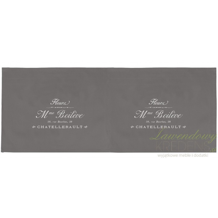 Zazdrostki w stylu prowansalskim nadają styl i piękny wygląd twojemu mieszkaniu. Zazdrostki ozdobne wykonane są w stu procentach z bawełny. Są dużych rozmiarów i mają kolor szary. Szare zazdrostki Madame posiadają na środku duże, białe francuskie napisy, które czynią je niespotykanymi i n iepowtarzalnymi.