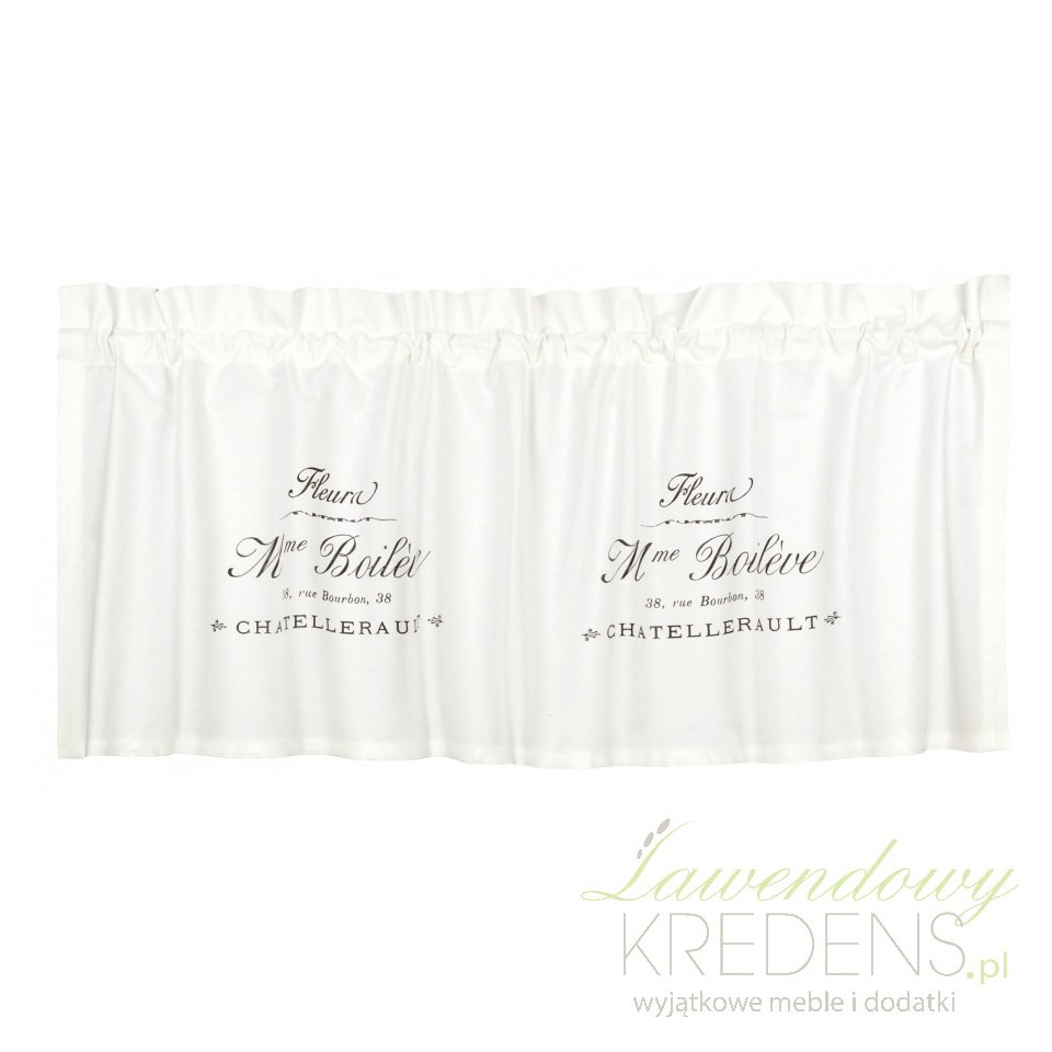 Zazdrostki w stylu prowansalskim Madame to wykonane w dużym rozmiarze zazdrostki z napisami, wykonane w stylu francuskim.