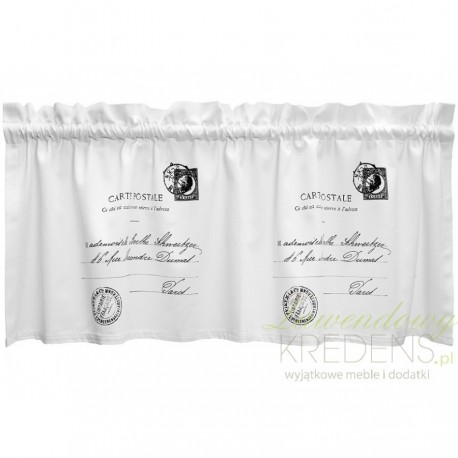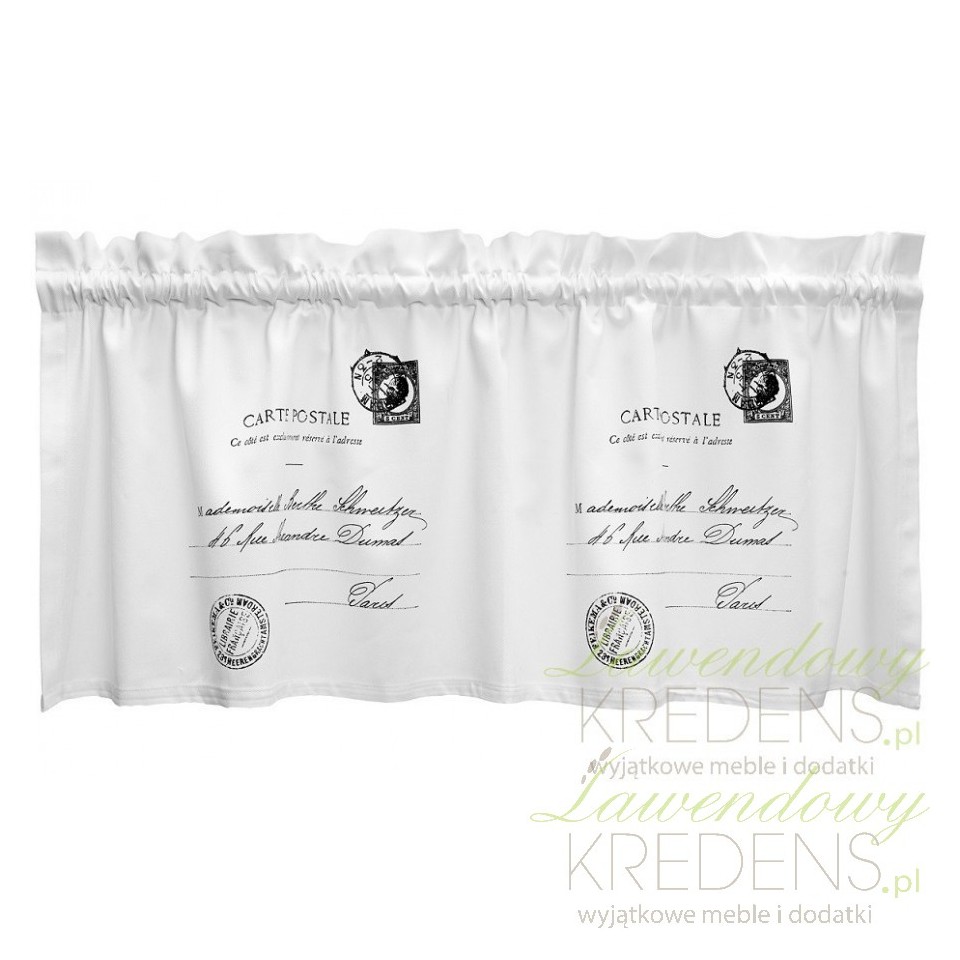 Prześliczne, pięknei układające się zazdrostki French Home, wykonane w 100% z wysokiej jakości bawełny. Ich śnieżnobiały kolor przełamany został czarną grafika i napisami, które imitują kartkę pocztową z wypisanym adresem. Zazdrostki białe świetnie sprawdzą się jako prowansalski dodatek, zapewniając prywatność i swobodę!
