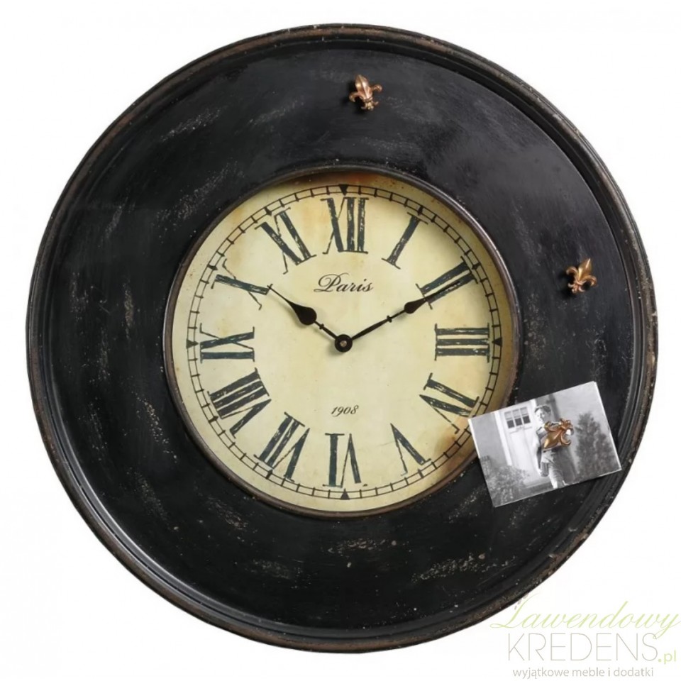 Rustic Zegar Belldeco z Magnesami to metalowy i przeszklony zegar vintage, którego ramy można używać jako tablicy magnetycznej. Rama ta jest efektownie i ciekawie postarzana poprzez odpryski i ptrzetarcia farby. Do zegara dołączone są trzy magnesy w kształcie lilijek.