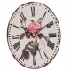 Owalny zegar z różą dzięki wykorzystaniu odpowiednich technik postarzania wygląda na zegar sprzed wielu lat.