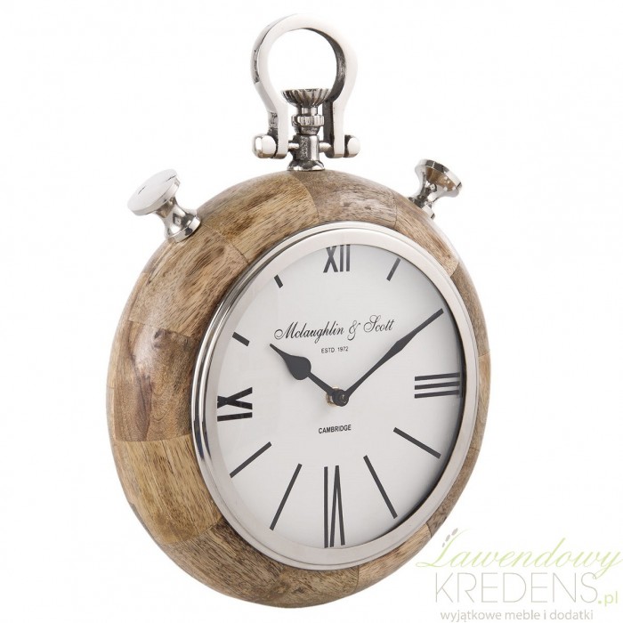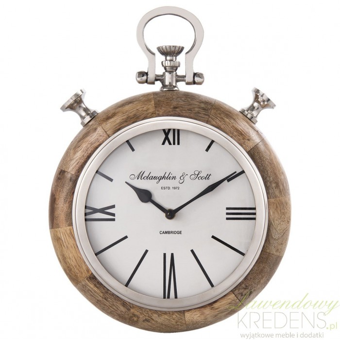 Zegar z drewnem to zegar z eleganckiej kolekcji Hamptons. Zegar Hamptons wykonano z najwyższą starannością i precyzją. Lekko zaokrąglona rama zegara otacza białą tarczę z napisami i rzymskim cyframi. Tarcza zegara znajduje się za taflą szkła i dodatkowo otacza ją metalowy pierścień w srebrnym kolorze. Zegary Hamptons to najbardziej eleganckie zegary ścienne w naszej ofercie.