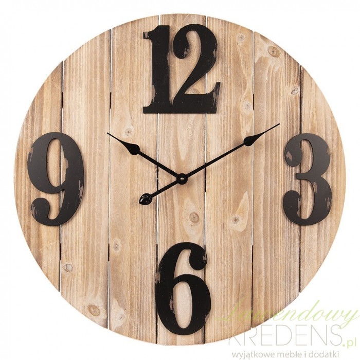 Okrągły zegar ścienny z kolekcji Natural pozwoli osiągnąć cel wszystkim urządzającym wnętrze na styl prowansalski. Zegar ma jasnobrązowy kolor drewna i ciemniejsze słoje na całej powierzchni. Znajdują się na nim tylko cztery cyfry, ale odpowiednio rozmieszczone pozwolą Ci precyzyjnie odczytać godzinę. Postaw na zegary ścienne z akcentem postarzeń i zamów jeden z nich już teraz.