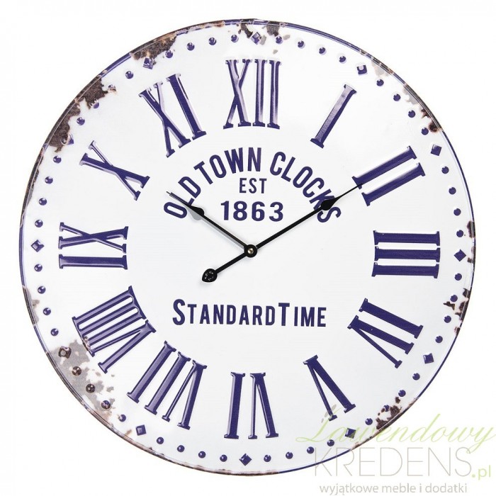 Postarzany zegar retro, którego duża tarcza o średnicy prawie 60 centymetrów będzie doskonale widoczna z każdego miejsca Twojego domu!