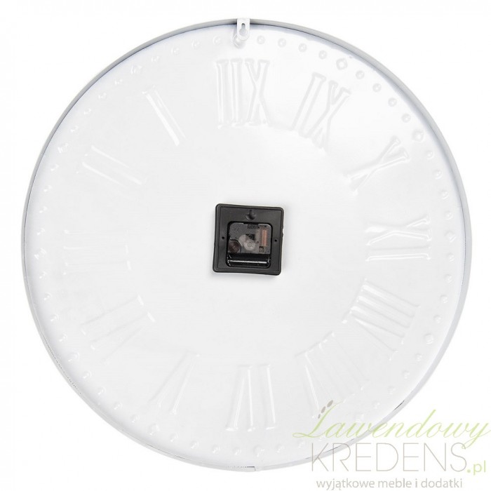 Duży zegar marki Clayre&Eef z białą tarczą oraz ciemnymi cyframi i prostymi wskazówkami, na których tle naniesiono napisy w języku angielskim. O jego charakterze świadczy nie tylko rozmiar tarczy, ale również liczne postarzenia w postaci rdzawych plam znajdujące się w głównej mierze przy krawędzi zegara. Zachwyci Cię również świetnie dobrana kolorystyka zegara, która doskonale komponuje się z wieloma aranżacjami.