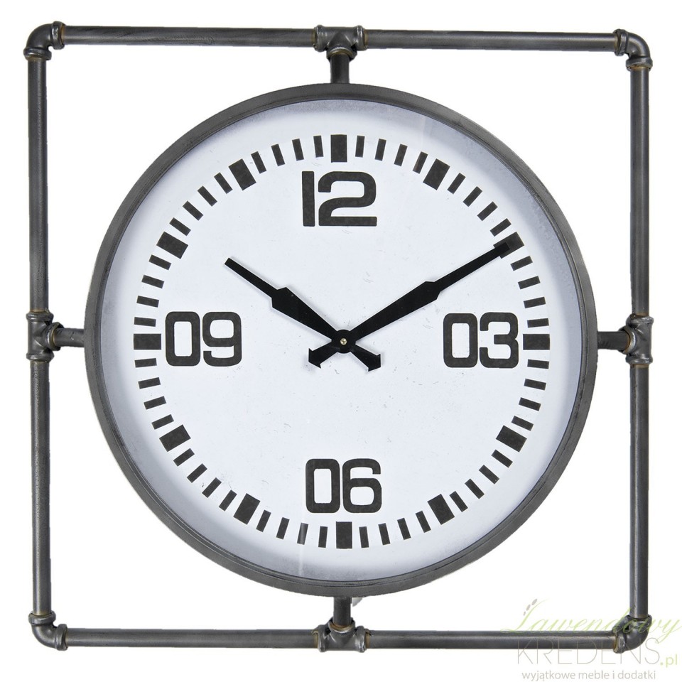 Interesujący zegar w stylu industrialnym z pewnością przyczyni się do Twojej punktualności. Jego prosta i zarazem oryginalna forma okrągłego cyferblatu wpisanego w kwadratową ramę sprawia, że zegar będzie pasował do każdej aranżacji wnętrza. Dzięki połączeniu metalu z szarością i bielą ten model staje się ponadczasowy. Dzięki niemu w wyjątkowy sposób udekorujesz ścianę. Zdecyduj sam i znajdź dla metalowego zegara odpowiednie miejsce.