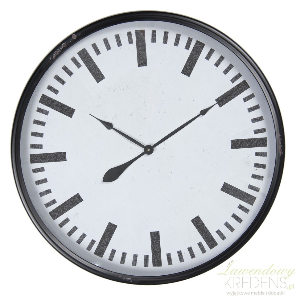 Zegar postarzany metalowy, czarno-biały to doskonały element dekoracyjno-praktyczny do wnętrza. Duży, bo o średnicy 80 centymetrów zegar, będzie stanowił efektowne wykończenie ściany. Zegar zasilany bateriami jest zaliczany do długowiecznych, bezawaryjnych modeli. Każde kto lubi antyczne dodatki przekonają celowe przecierki wykonane na krawędziach ramy.