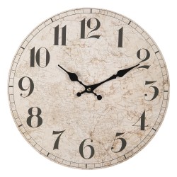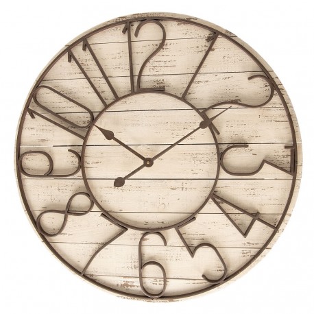 Zegar ścienny w stylu Shabby Chic będzie stanowił nie tylko uroczy dodatek do każdej aranżacji, ale także pozwoli Ci mieć na oku aktualny czas. Jego wyjątkowy wygląd z nutą naturalności sprawia, że zegar staje się bardzo stylowym dodatkiem, który pasuje do kuchni, jadalni, biura i salonu. Zegar ma ponad 70 centymetrów średnicy i zawiera duże, metalowe, arabskie cyfry, które zostały nałożone na drewniany cyferblat w formie metalowej nakładki ażurowej.