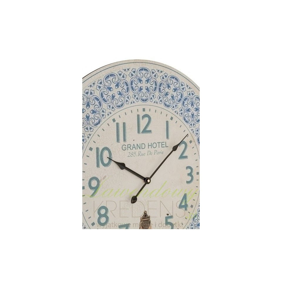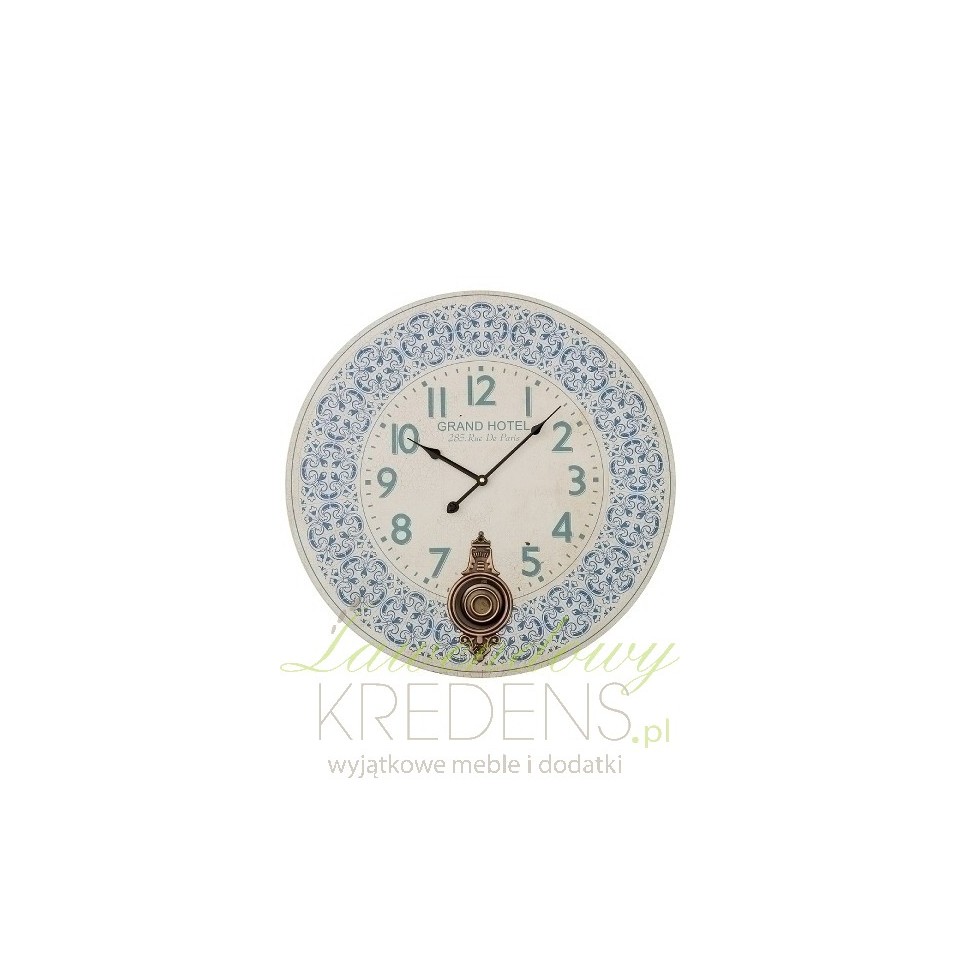 Okrągły zegar retro z kolekcji Paris to model zegara, który zahipnotyzuje Cię nie tylko ciekawym wzorem ale również dekoracyjnym wahadłem.