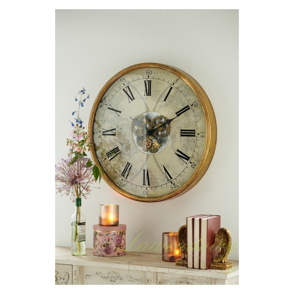 Nic nie podkreśli charakteru Twojego wnętrza tak dobrze, jak ten duży zegar vintage z mechanizmem ozdobnym z pogrubionymi, rzymskimi cyframi.