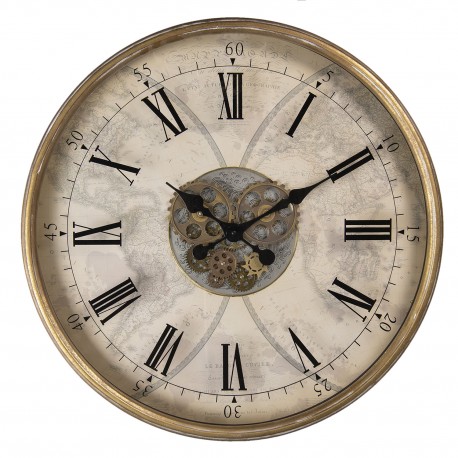 Ten inspirowany antykami zegar vintage ma okrągłą ramę w kolorze starego złota i cyferblat z szarym nadrukiem mapy świata. Choć zegar vintage z mechanizmem ozdobnym wygląda na stary, jest w pełni funkcjonalny i gotowy do zawieszenia! Zegary ścienne od Clayre & Eef są uwielbiane za jakość i pomysłowe formy, dzięki którym wpisują się w każdą aranżację. Zaufaj sile dodatków w starym stylu, które dedykowane są współczesnym wnętrzom – najlepsze z nich czekają na Ciebie w naszym sklepie!