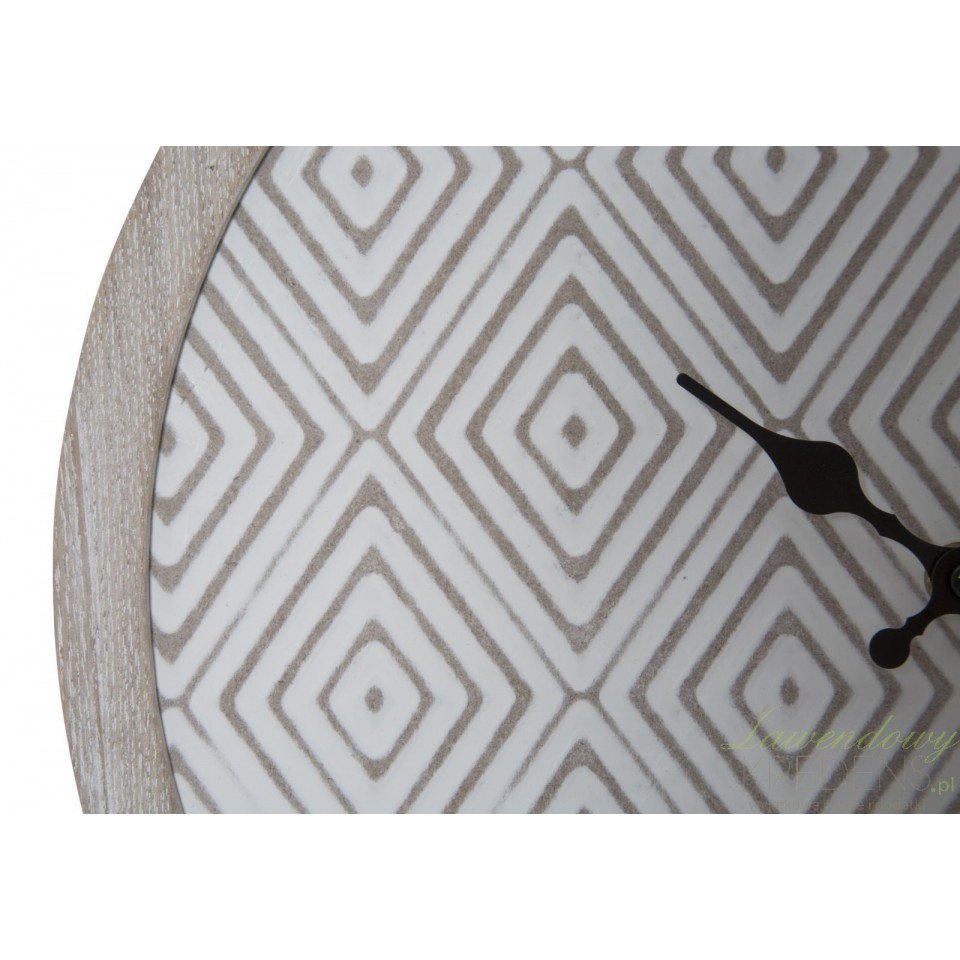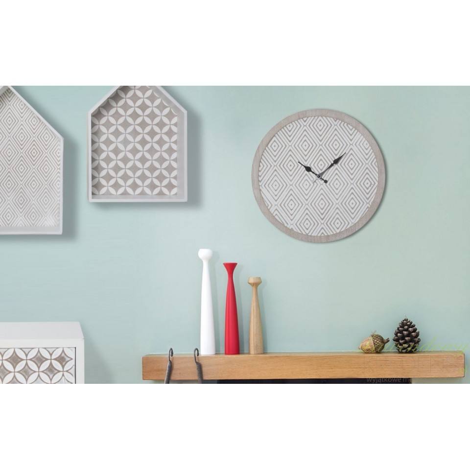 Okrągły zegar ścienny z hipnotyzującym wzorem w romby zaczaruje każdą ścianę i zamieni ją w najbardziej stylową ścianę w okolicy.