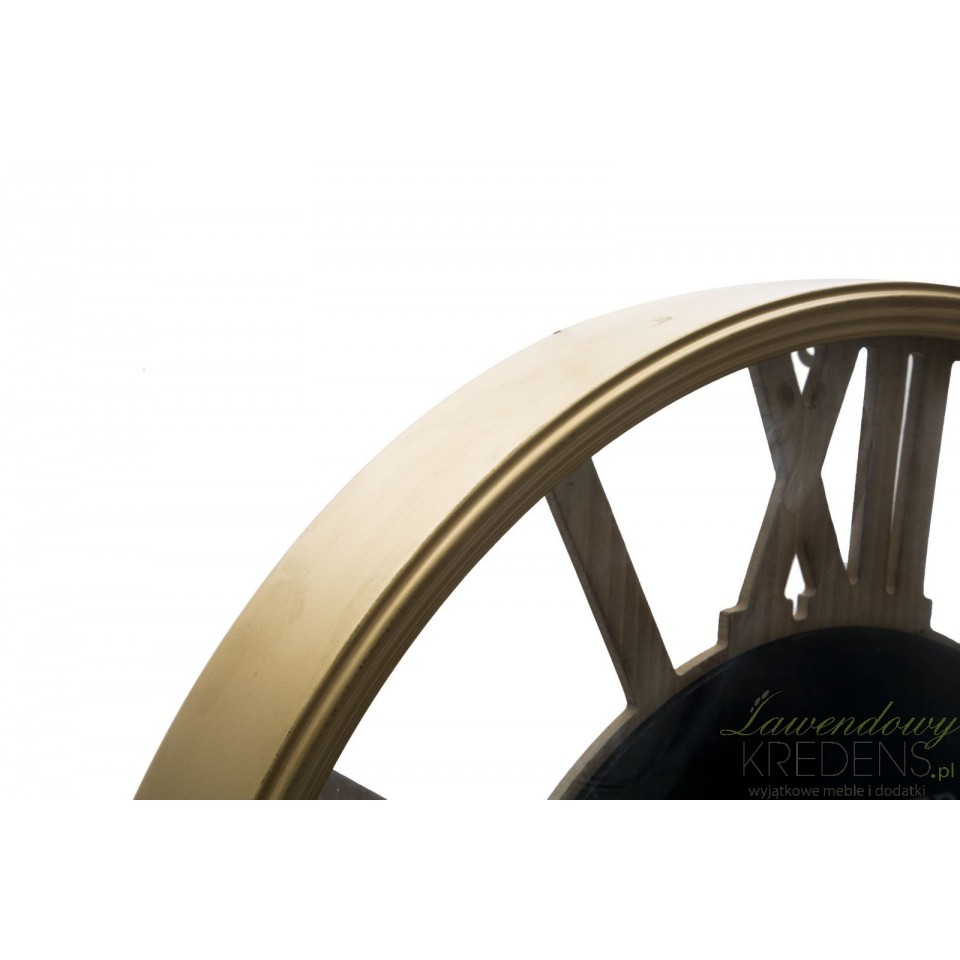Przekonaj się, że zegar ażurowy na ścianie w Twoim salonie nie tylko uzupełni lukę na ścianie ale też wzbogaci wystrój wnętrza. Dekoracyjny zegar ażurowy jest okrągły, posiada ciemny cyferblat z napisami i rzymskie cyfry w kolorze brązowym. Całość oprawiona w złotą ramę wygląda elegancko niczym ozdoba ściany w pałacowym wnętrzu. Zanim jednak podejmiesz ostateczną decyzję, sprawdź również inne zegary ażurowe od Mauro Ferretti!