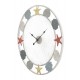 Kolorowy zegar w stylu marynistycznym wykonany z metalu doskonale sprawdzi się na ścianie w nadmorskiej knajpie lub w pokoju młodzieżowym.