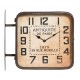 Zegar dworcowy Belldeco to dość duży zegar dwustronny, którego tarcze mają różne kolory. Po jednej stronie tarcza zegara ma jasnobrązowy kolor z czarnymi cyframi i napisami, natomiast po drugiej stronie zegar ma czarną tarczę z jasnymi cyframi i napisami. Rama zegara wykonana jest z metalu, a obydwie tarcze są przeszklone. W celu włożenia do zegara baterii zegar łatwo otwiera się niczym książką.