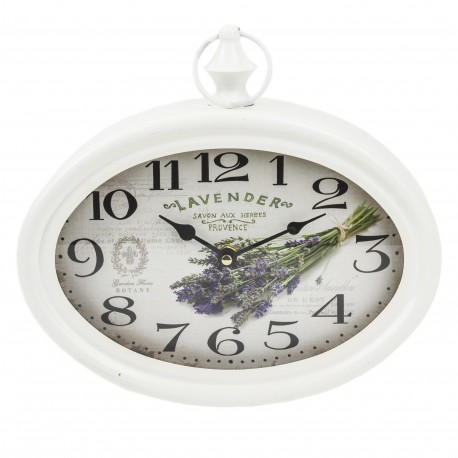 Niepowtarzalne zegary ścienne to metalowe zegary z lawendą, w kształcie przypominające charakterystyczne stojące budziki z uchwytem. Motyw lawendy doskonale komponuje się zarówno stylowo jak i kolorystycznie z jasną obudową i tarczą z napisem LAVENDER. Spraw komuś wspaniały prezent!