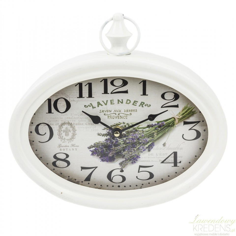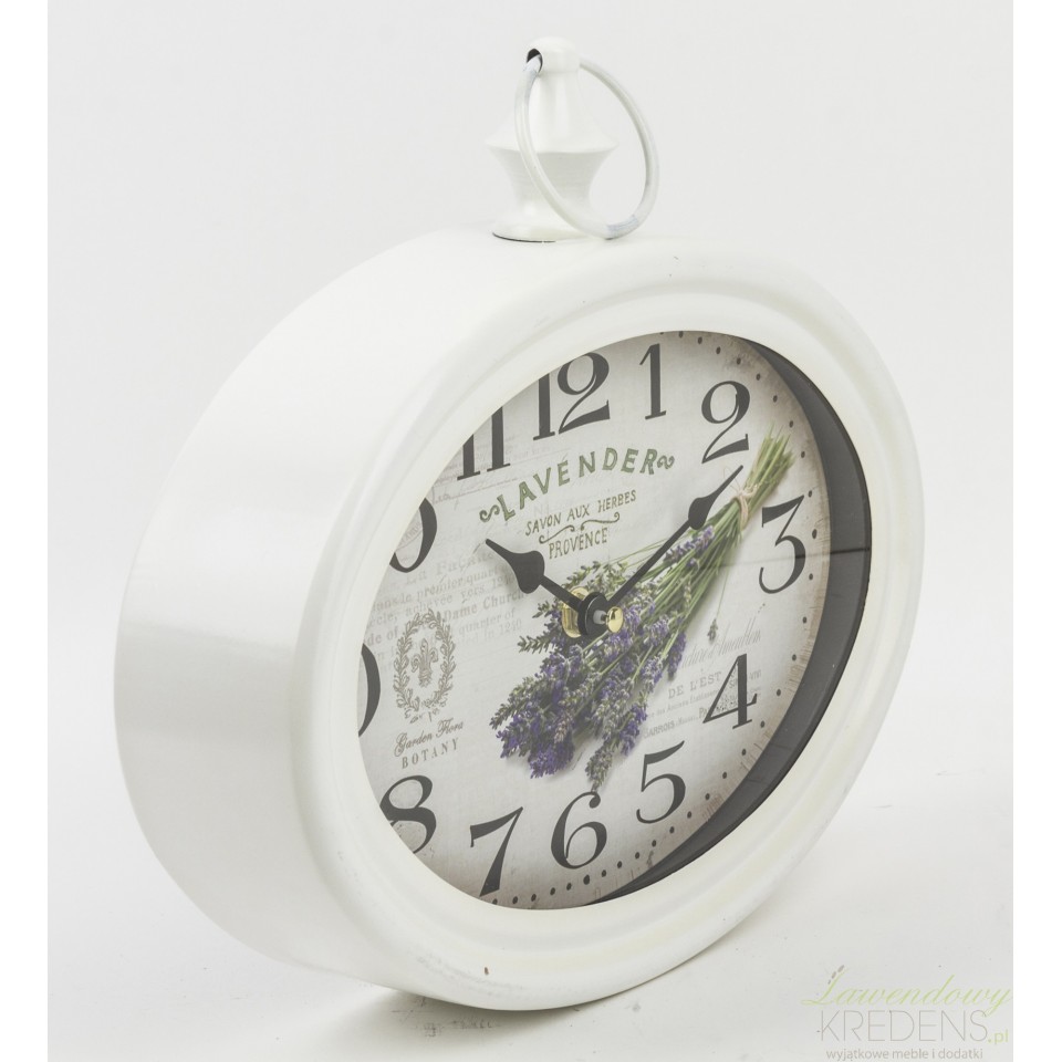 Fantastyczny zegar z lawendą w jasnej, metalowej obudowie, z wyjatkowo wyraźnymi cyframi i wskazówkami!