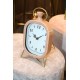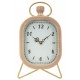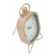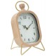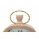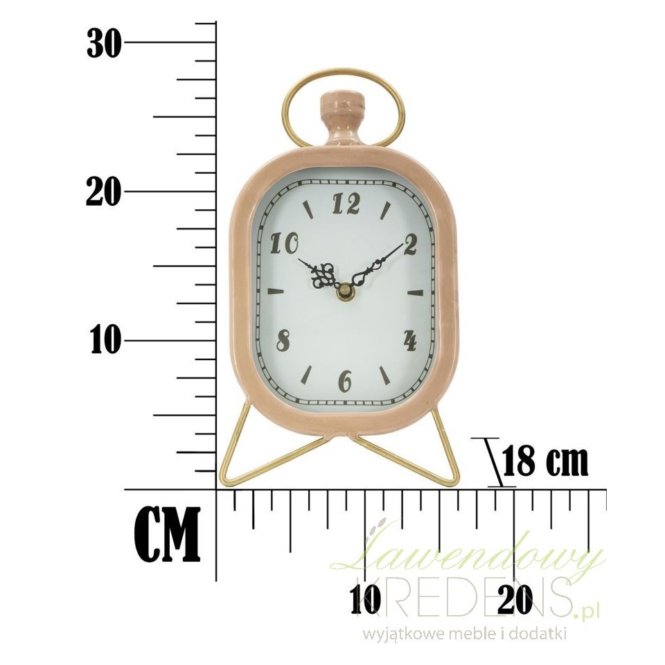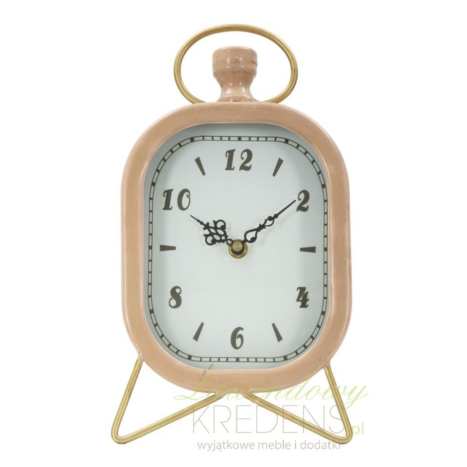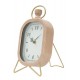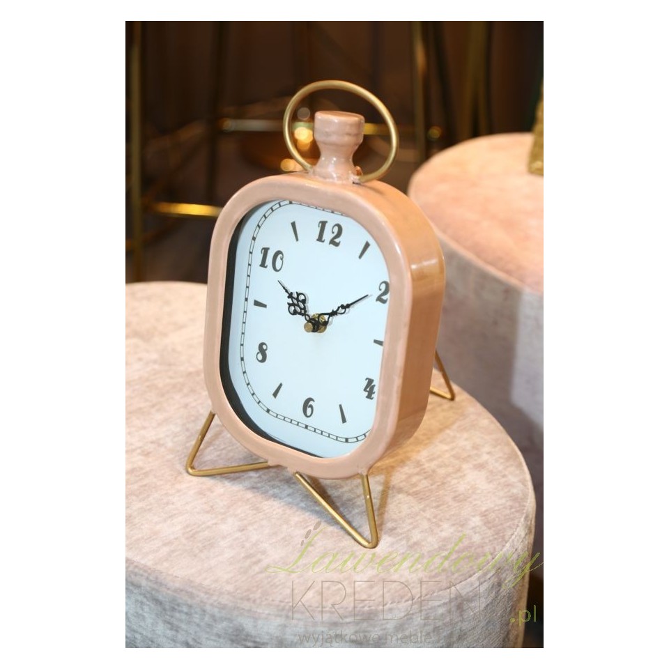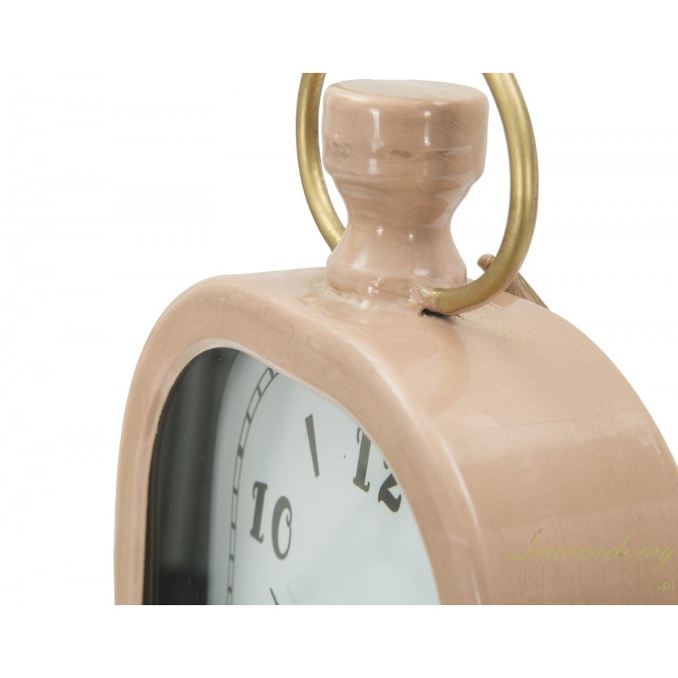 Zegar stołowy w metalowej obudowie w kolorze subtelnego różu został zainsprowany stylistyką retro.