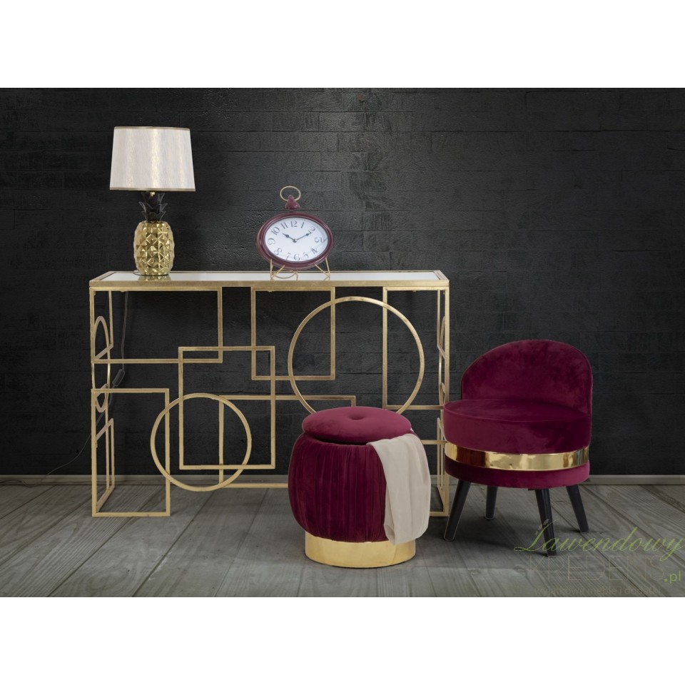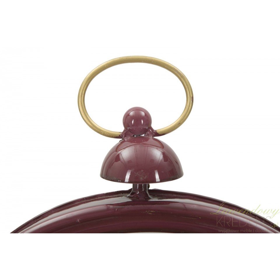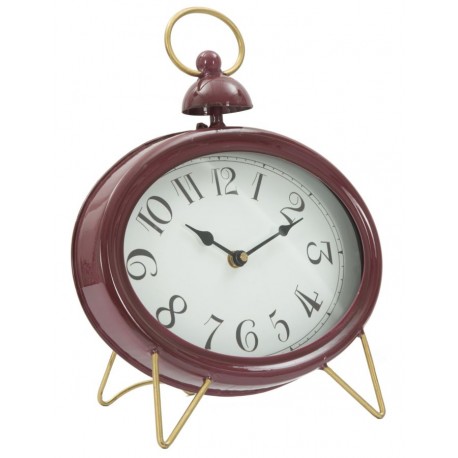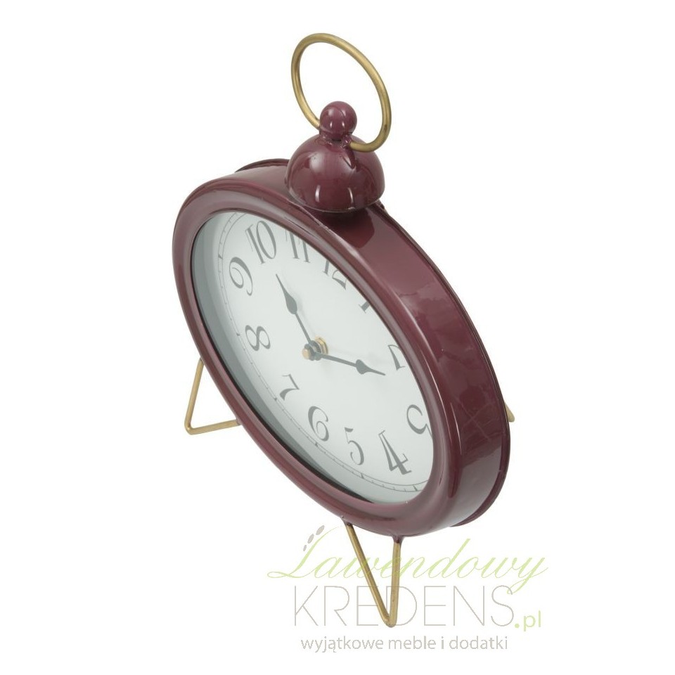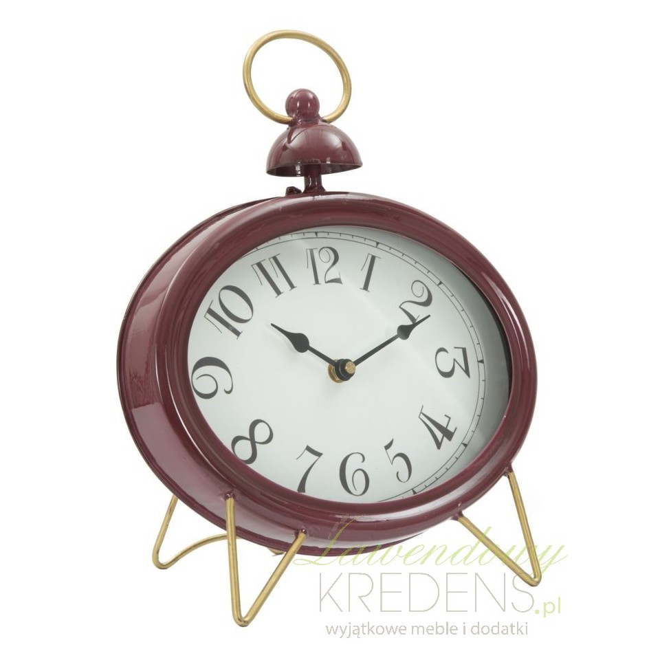 Bordowy zegar stołowy na metalowych nóżkach w kolorze złotym to klasyk, który swoją formą przypomina budzik. Wykonany z metalu jest solidny i niezawodny, a jego owalny cyferblat ma jasny kolor i arabskie cyfry oznaczające godziny. Jeśli poszukujesz zegara, który dopełni aranżację retro lub industrialną to musisz wiedzieć, że metalowy zegar na złotych nóżkach nie ma sobie równych. Zamów już teraz i ciesz się doskonałą jakością, która wyróżnia zegary stołowe od Mauro Ferretti.