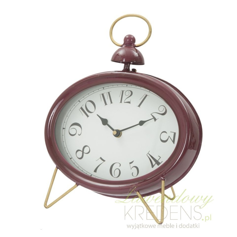 Bordowy zegar stołowy to nietuzinkowy dodatek, który świetnie będzie komponował się meblami drewnianymi i wszystkimi innymi elementami wyposażenia wnętrz w kolorach brązu i czerni.