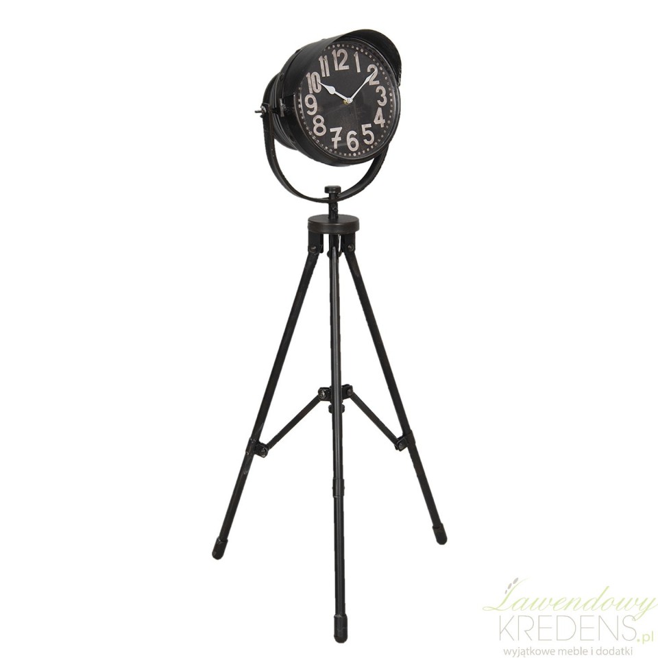 Poznaj nas i nasze kultowe dodatki do domu – oto zegar podłogowy loft na metalowym trójnogu przypominający industrialną lampę.