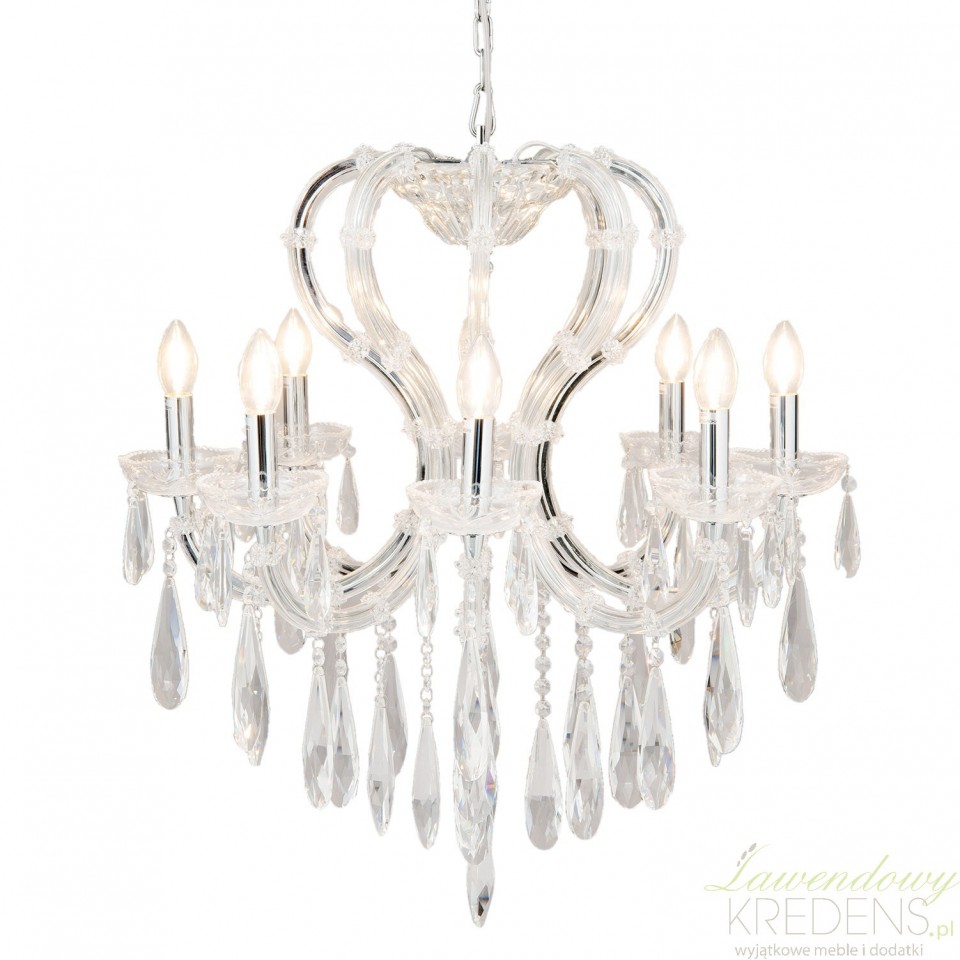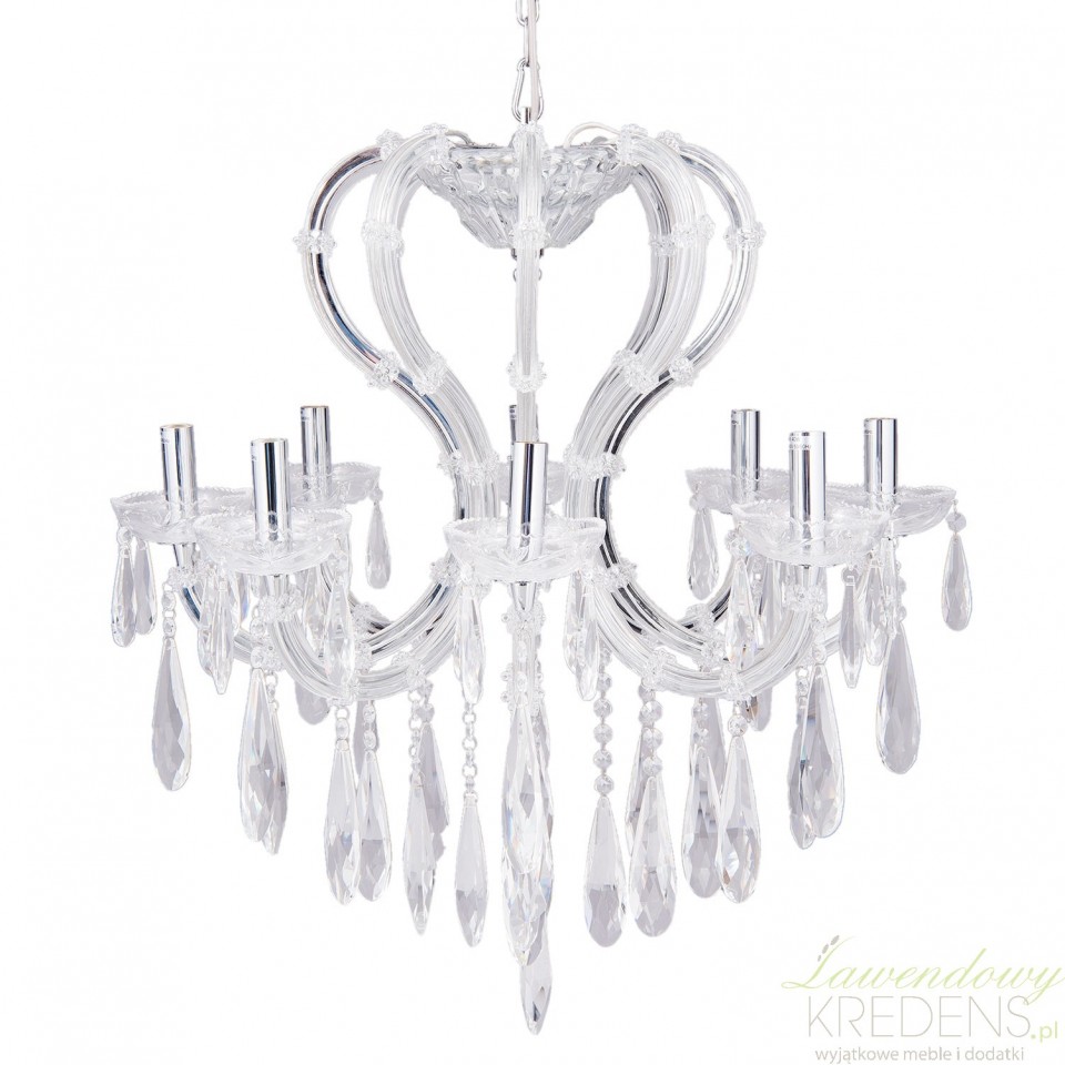 Kryształki od wieków są synonimem bogactwa i luksusu, dlatego uważamy, że żyrandol z kryształkami to najlepszy wybór do wielkomiejskich, pałacowych aranżacji. Żyrandol ma osiem metalowych ramion, z których swobodnie zwisają błyszczące zawieszki ze szklanymi kryształami i koralikami. Żyrandole z kryształkami z oferty Clayre & Eef to najlepszy sposób na zarażającą pozytywną energią przestrzeń. Żyrandole pałacowe, lampy i abażury to dodatki, które stworzą niepowtarzalną kompozycję świateł w każdym miejscu.