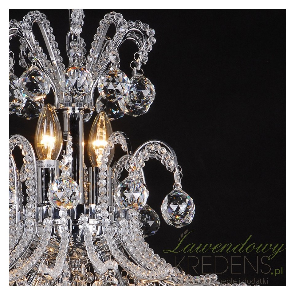 Ten wyjątkowy żyrandol glamour z kryształkami zachwyca blaskiem i luksusem, dodając odrobiny przepychu każdemu pomieszczeniu. Podstawą żyrandola jest dekoracyjna konstrukcja metalowa, która gwarantuje jego trwałość i stabilność. Metalowe ramiona w kolorze srebrnym tworzą elegancką oprawę dla oszałamiających kryształków ze szkła, które lśnią i odbijają światło w niesamowity sposób. Duży rozmiar sprawia, że doskonale komponuje się z przestronnymi wnętrzami o wysokich sufitach. Żyrandole z kryształkami są idealnym uzupełnieniem eleganckich aranżacji, dodając im splendoru i uroku.