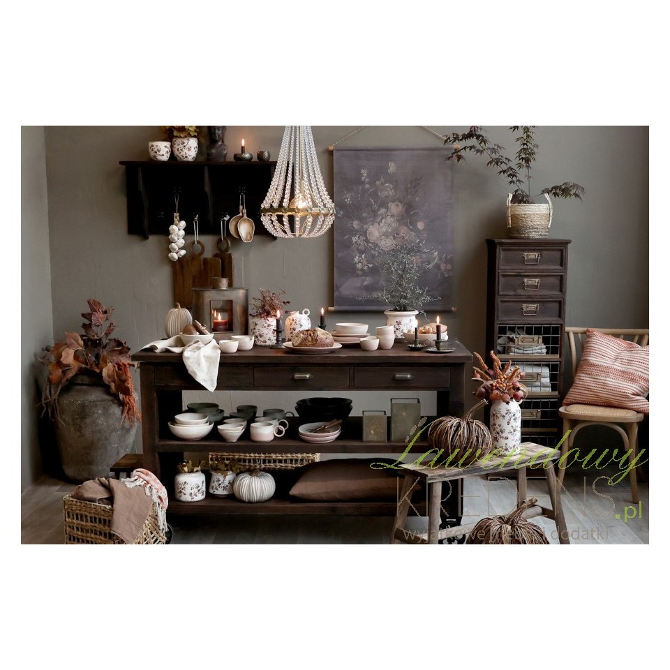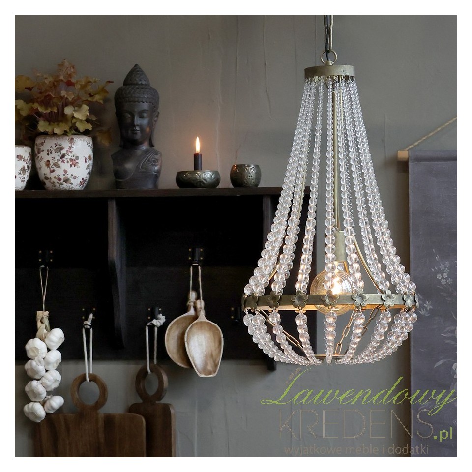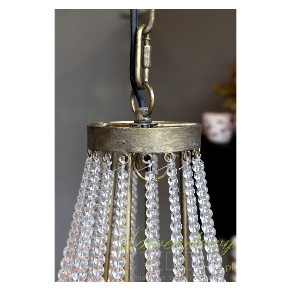 Wykonany z metalu w odcieniu antycznego mosiądzu oraz szklanych kryształków, ten dekoracyjny żyrandol o wysokości 60 cm i szerokości 35,5 cm to kwintesencja elegancji z duszą. Jego smukła forma, zakończona łańcuchem o długości 1,4 metra, pięknie prezentuje się zarówno nad stołem w jadalni, jak i w salonie, sypialni czy nawet w stylowej łazience. To wyjątkowy dodatek do wnętrz w stylu vintage, boho, shabby chic, a także romantycznych przestrzeni z nutą francuskiego uroku.